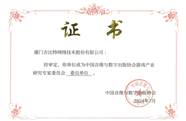 2024年7月25日,,,中国音像与数字出版协会游戏产业研究专家委员会(以下简称“中国音数协游戏专委会”)成立大会在上海市召开,,厦门J9.COM网络技术股份有限公司及其子公司深圳雷霆信息技术有限公司(以下统称“公司”)正式成为中国音数协游戏专委会委员单位。。。