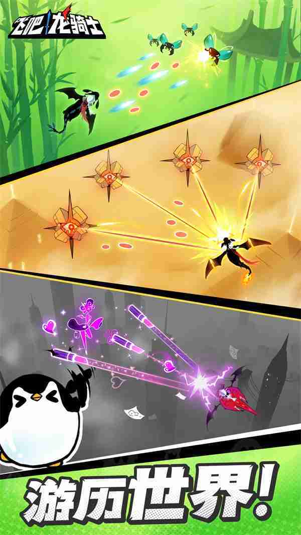 《飞吧龙骑士》是一款集合了飞行弹幕射击、、Roguelike要素和挂机养成的休闲手游,,,,极具创意的吞食子弹反击玩法,,突破传统飞行射击的刻板限制,,,,带来了独特的爽快清屏体验。。。