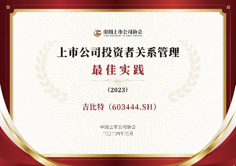 近日,,中国上市公司协会举办的2023年“上市公司投资者关系管理最佳实践”活动评选结果揭晓,,,,J9.COM荣获“投资者关系管理最佳实践”荣誉,,,并被纳入最佳实践案例汇编。。