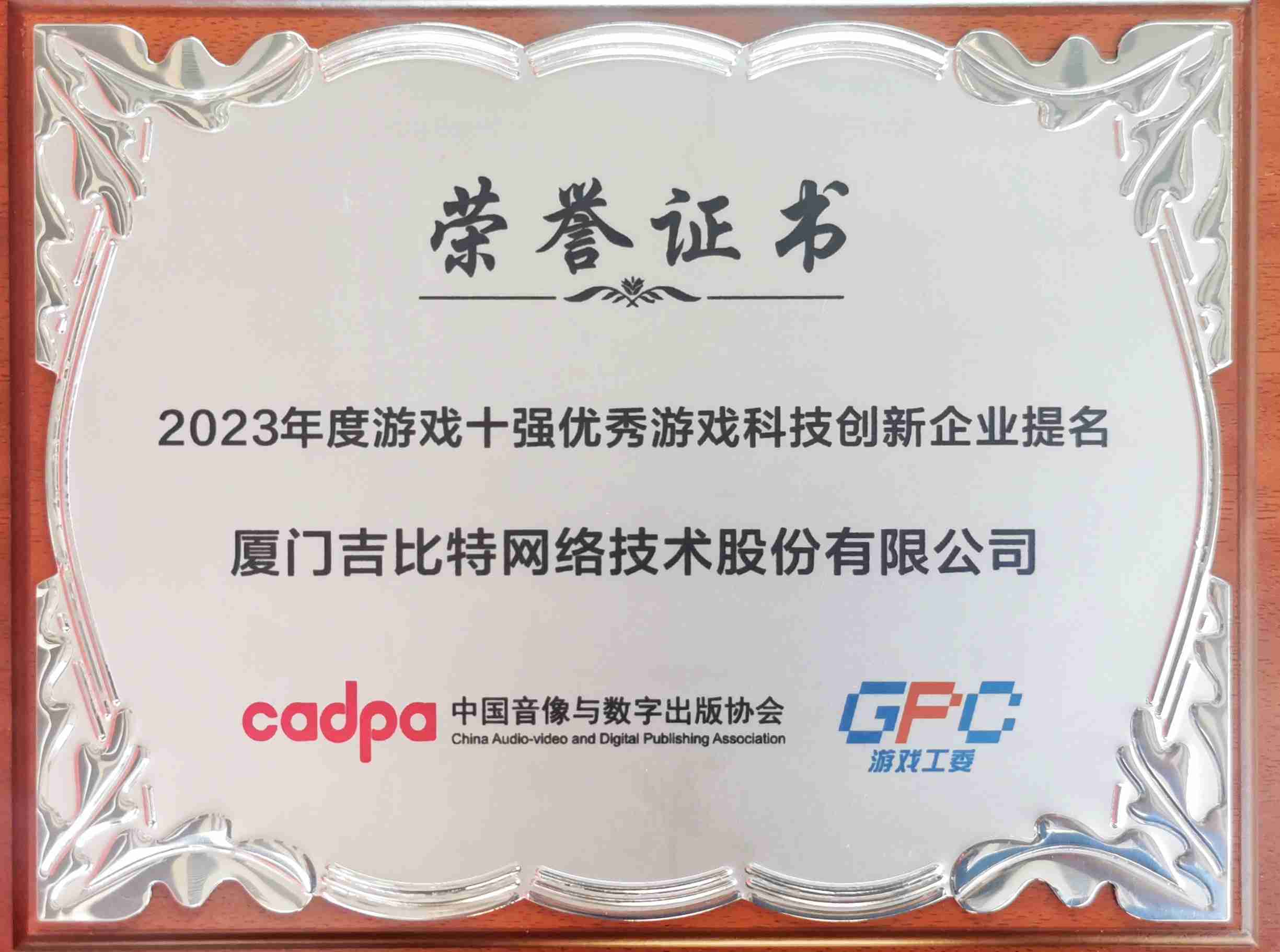 12月14日,,,由中国音像与数字出版协会主办,,中国音数协游戏工委、、中国游戏产业研究院承办的“2023游戏十强”评选结果正式发布。。“游戏十强”在我国游戏产业界享有“中国第九艺术封神榜”美誉,,其评选秉承公开、、、公平、、、、公正的原则,,因其代表性、、、、影响力、、公信力被誉为中国游戏产业最高奖项。。继2022年度入围后,,,J9.COM今年再次获得“优秀游戏科技创新企业”提名,,研发创新实力获得肯定。。。。