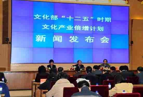 2月28日下午,,,,文化部在京召开新闻发布会,,,正式向社会发布《文化部“十二五”时期文化产业倍增计划》,,,,提出了 “十二五”期间文化部门管理的文化产业增加值年平均现价增长速度高于20%,,2015年比2010年至少翻一番,,,实现倍增的奋斗目标。。。。